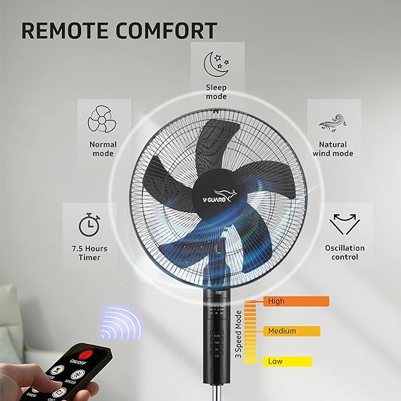 V-Guard Esfera 400mm Pedestal Fan (Remote + 3 Speed Modes)